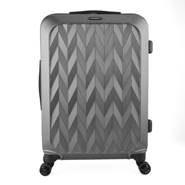 Travel in style with this chevron designed suitcase. With a charcoal and black colourway, this suitcase has a hardware shell. The 8 wheels allow the suitcase to be easily rolled during transportation. Gel grip handles allow you to easily carry the suitcase when required to help prevent slipping. Pack up your clothes with ease and keep your belongings secure with the use of packing straps and mesh divider.