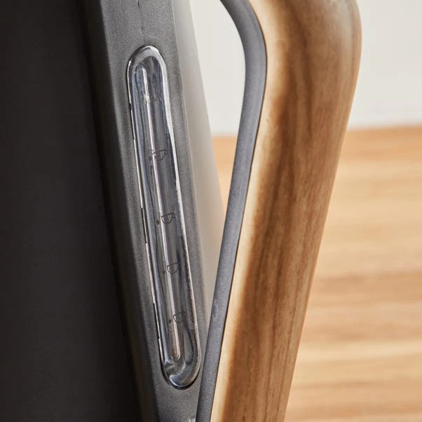 Designed in a sleek matt black colourway, this 1.7 litre contemporary jug kettle has a 3000W power output and a 360-degree cordless swivel base suitable for both left and right-handed use. With internal cup markers and water level gauge with cup marks for ease of refilling, this contemporary kettle has a removable water filter for ease of cleaning and a removable lid for ease of refilling.