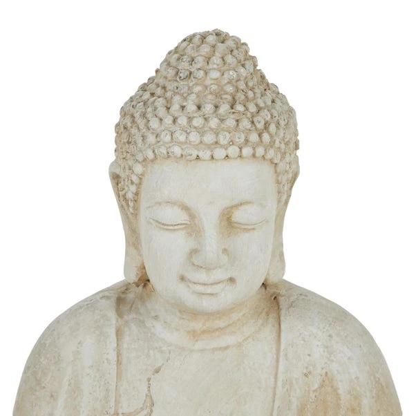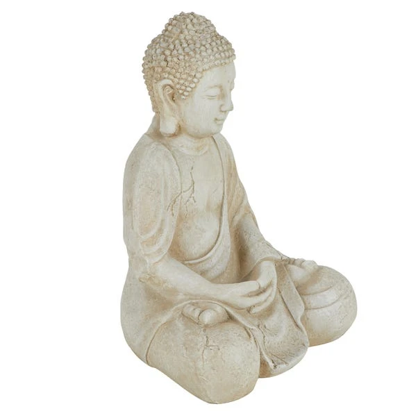 Patterned with a cool cream colour and featuring a weathered finish for an antique look, this Buddha ornament is perfect for adding a beautiful touch to your garden. This statue is frost and UV resistant, making it resilient for the outdoors while being lightweight for easy use.