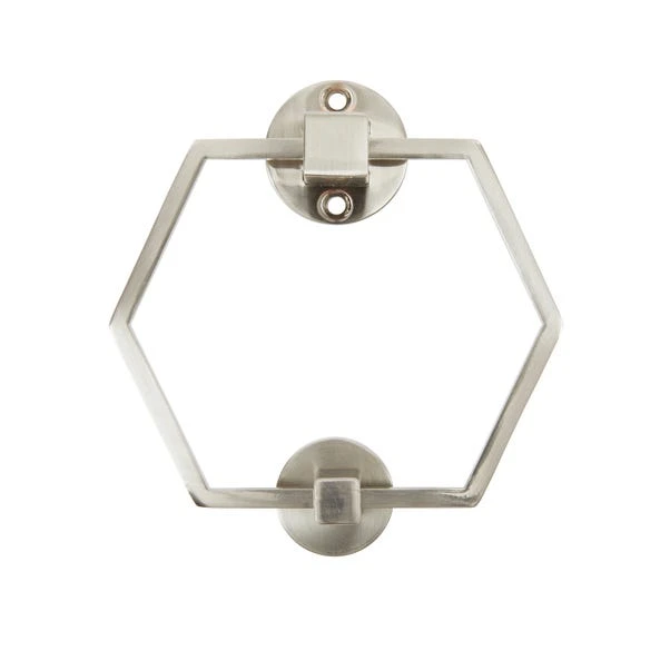 Perfect for a finishing touch to your door, this hexagon door knocker has a contemporary shape and a classic brushed chrome finish. The zinc alloy die casting is easy to fit onto your door and wipe clean. Please not that fittings are not included with this door knocker.