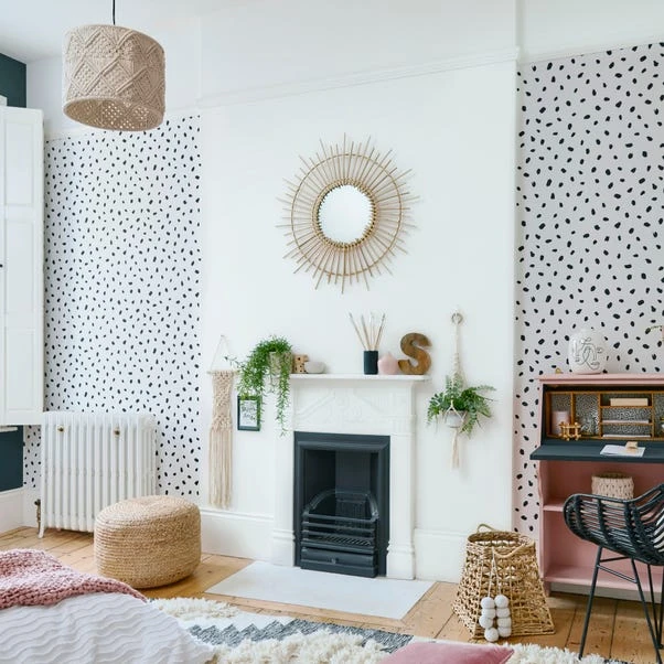 This contemporary wallpaper features a stunning spotty pattern, perfect for a feature wall, accent piece or for decorating the whole room. This wallpaper is also crafted with a traditional smooth finish.