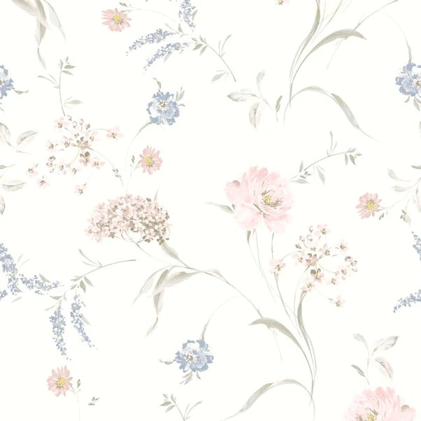 Holly Willoughby brings you this beautiful delicate floral wallpaper that has been designed with a stunning array of different flowers. Crafted with a soft pastel colourway, this wallpaper has a heavy weight and is easy to hang. The wallpaper can be wiped clean.